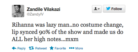 While her US fans may have hailed the show as one of the greatest moments in her career, South African fans who attended Rihanna‘s first ‘Diamonds World Tour’ in Johannesburg have rocked her Navy’s boat with reviews some are billing the worst of her career.